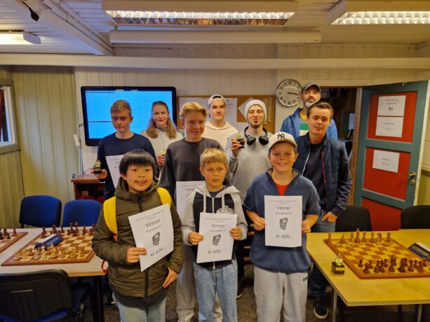 B-gruppen ble vunnet av Trym Gimse fra Nordstrand SKU som vant alle sine 7 partier og tok førsteplass foran Espen Siben Yang, Dragen på 6 poeng. Deretter fulgte Christian Lyngholm, Stjernen med 5½ poeng og en stor gruppe med seks spillere på 5 poeng. En av disse var Sara Gilsdottir fra arrangørklubben, som tok kretsmestertittelen for kvinner. Foto: Stjernen.
